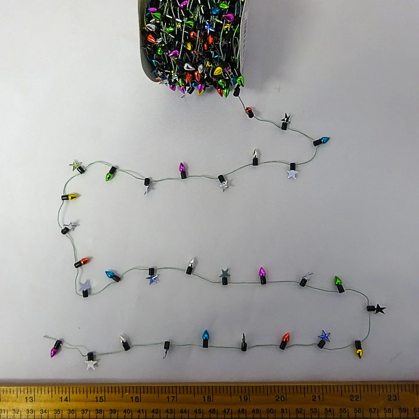 Bead Trimming Christmas Lights And Stars Multi can be used for dressmaking, fancy dress costumes and craft/embellishment.