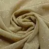 The fabric was sent in an overnight delivery service so I received it very soon. It is a beautiful fabric, 4 ways stretchy and resistant. It has amazing golden tiny spots which shine from the distance and the tone of the fabric is perfect for the skin parts on dancing costumes. The only small detail that I don’t like is that the golden glitter falls from it, yet so I would buy it again.