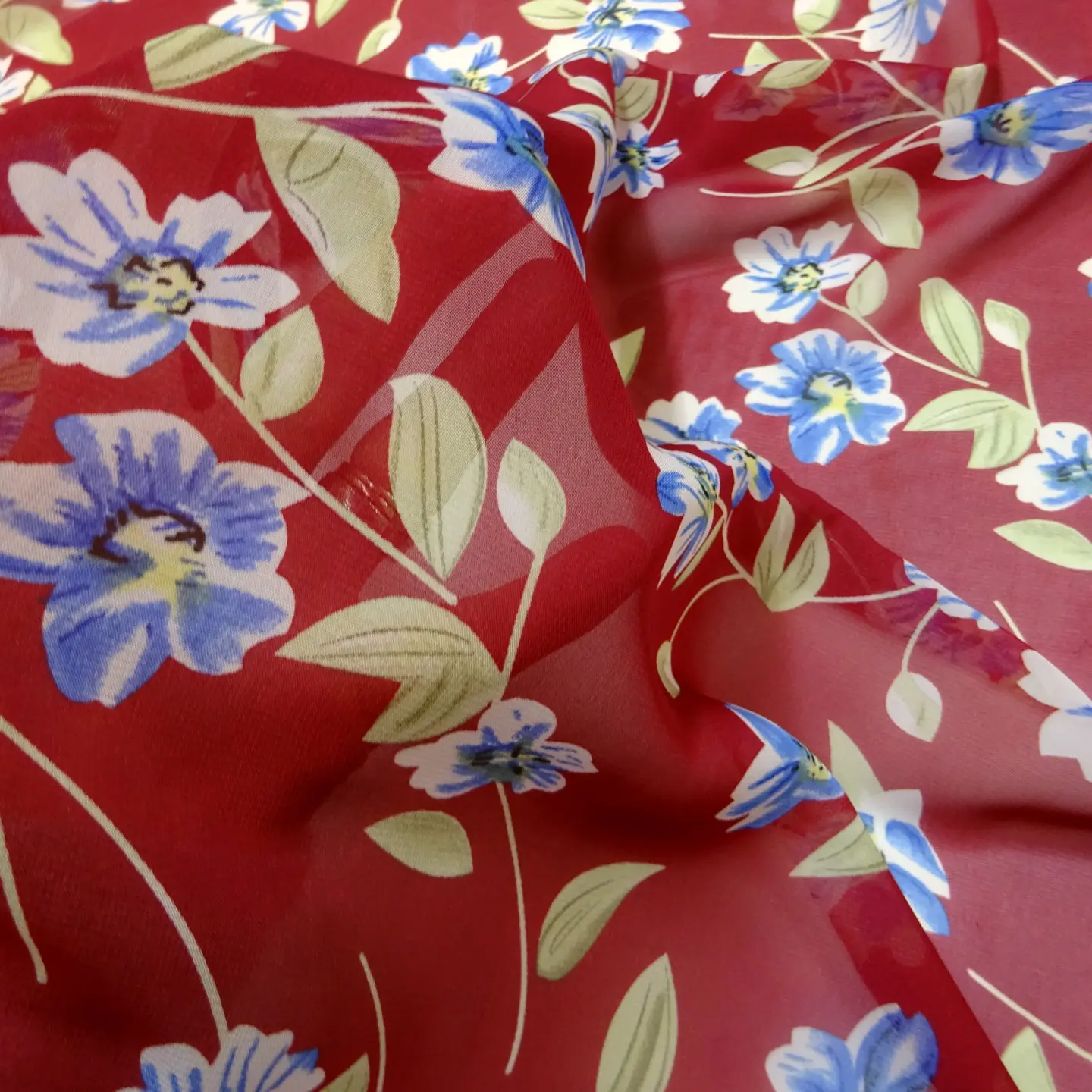 3 reviews for Chiffon Fabric Floral Blue Pansy Wine