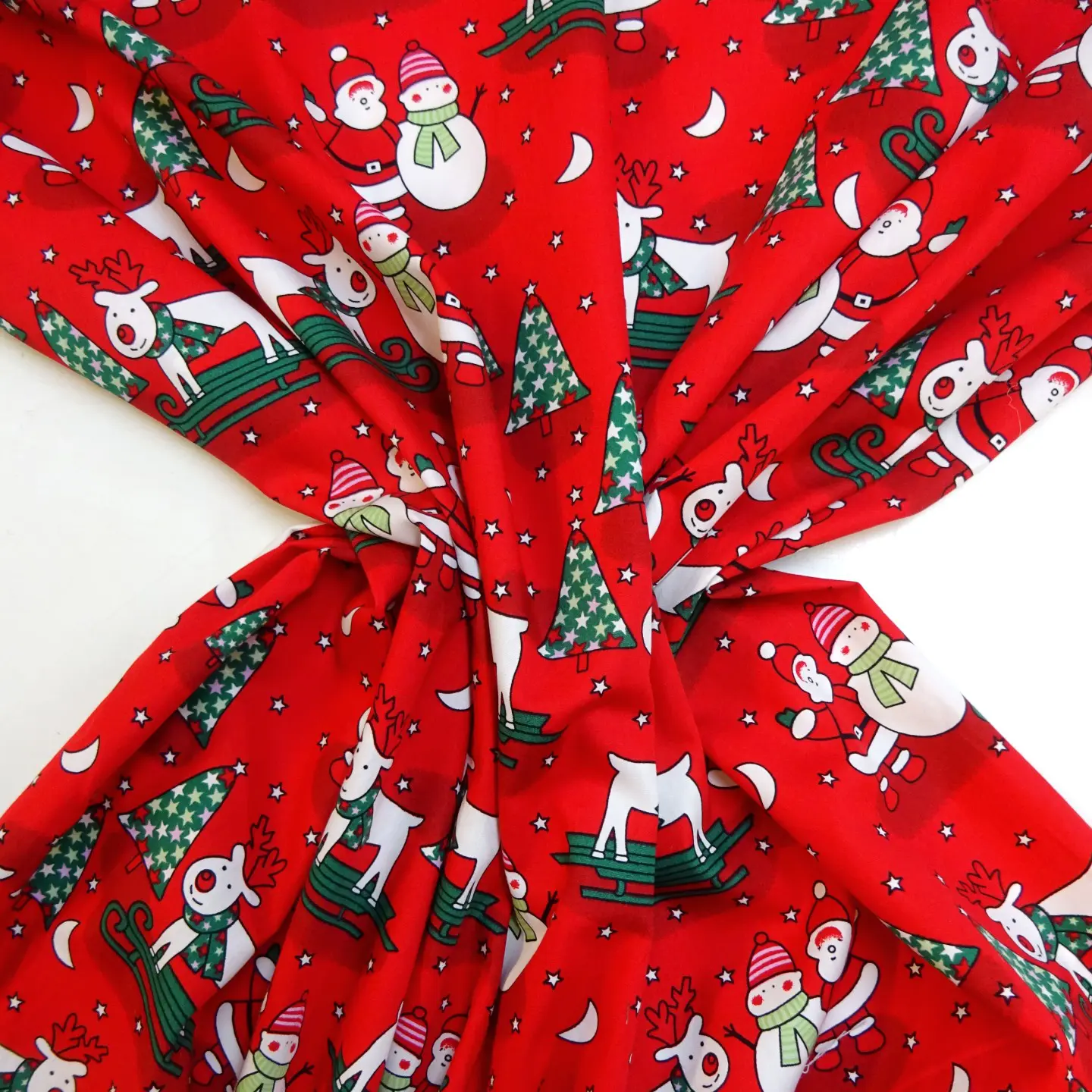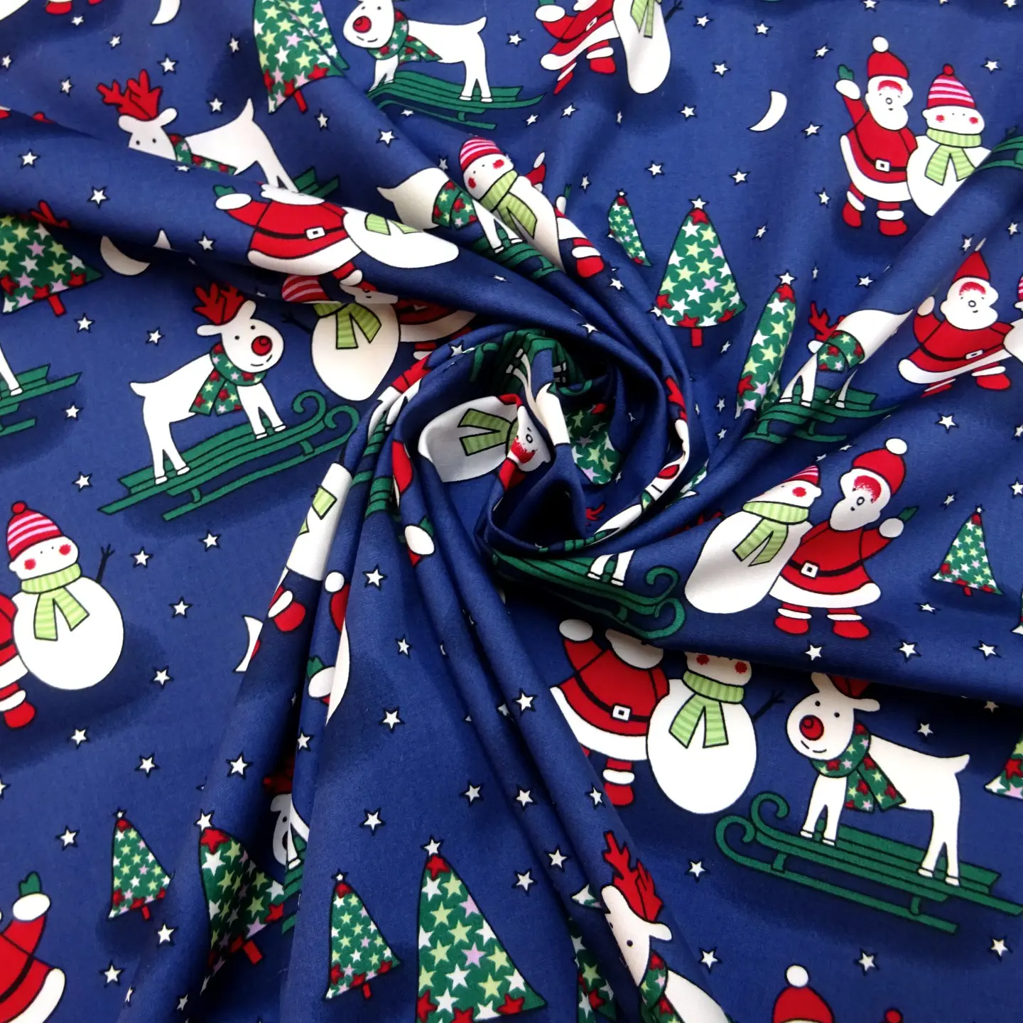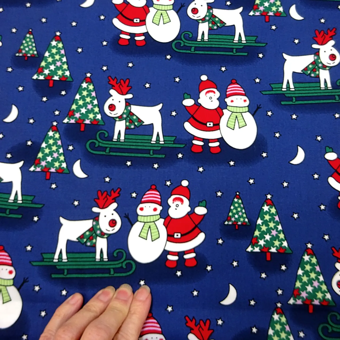 Christmas Fabric 100% Cotton Skiing Reindeer