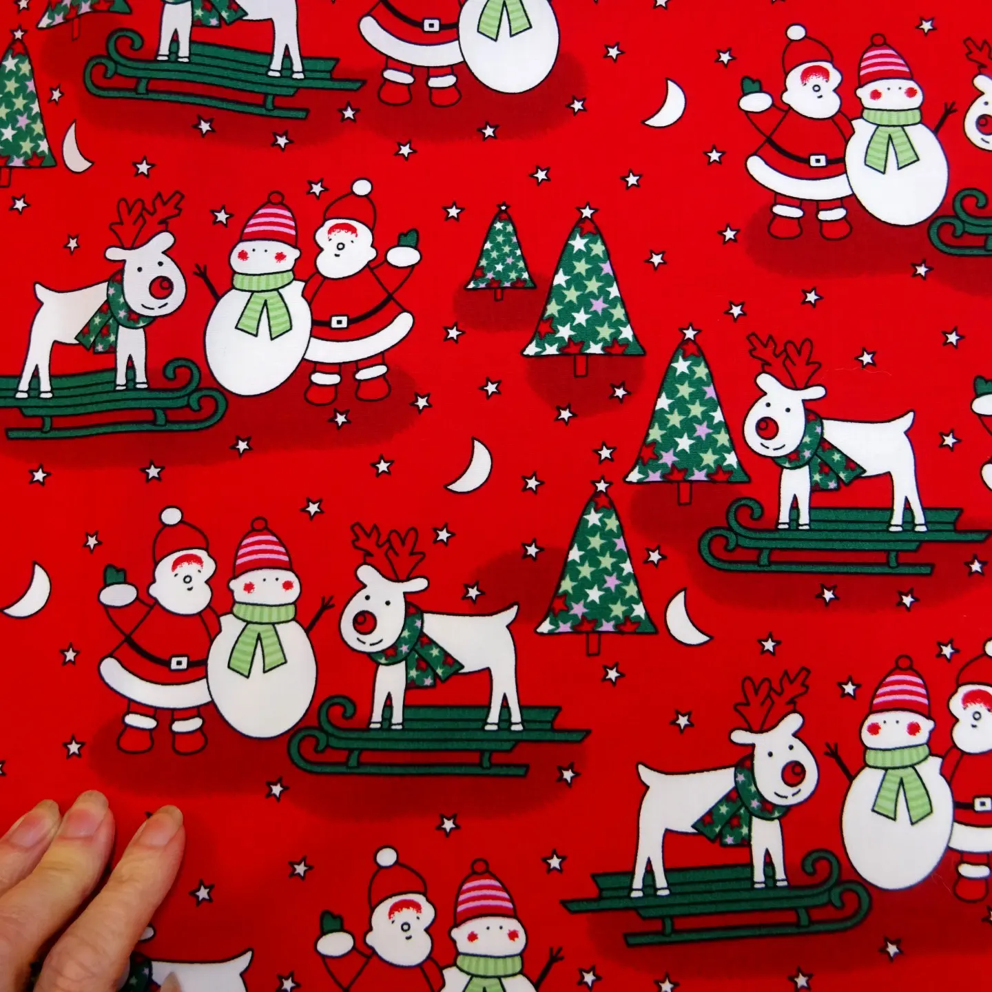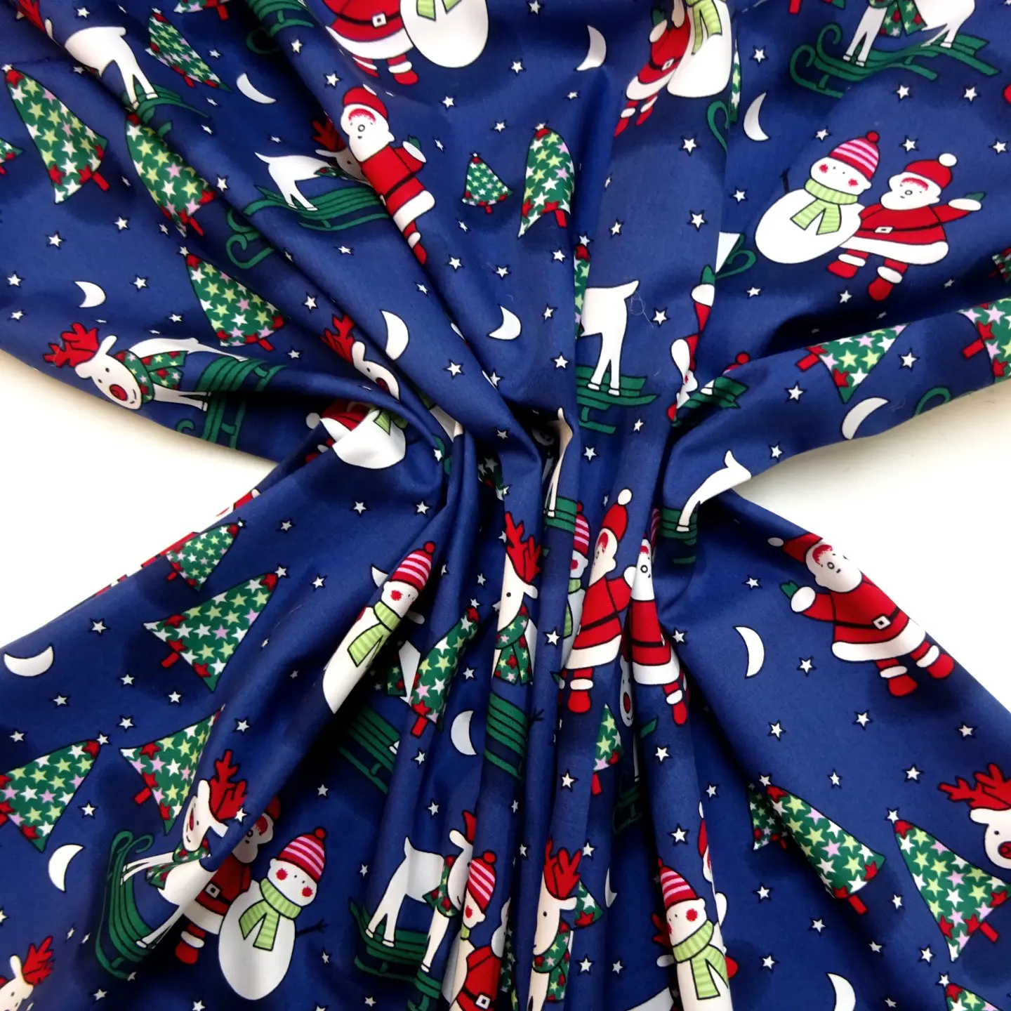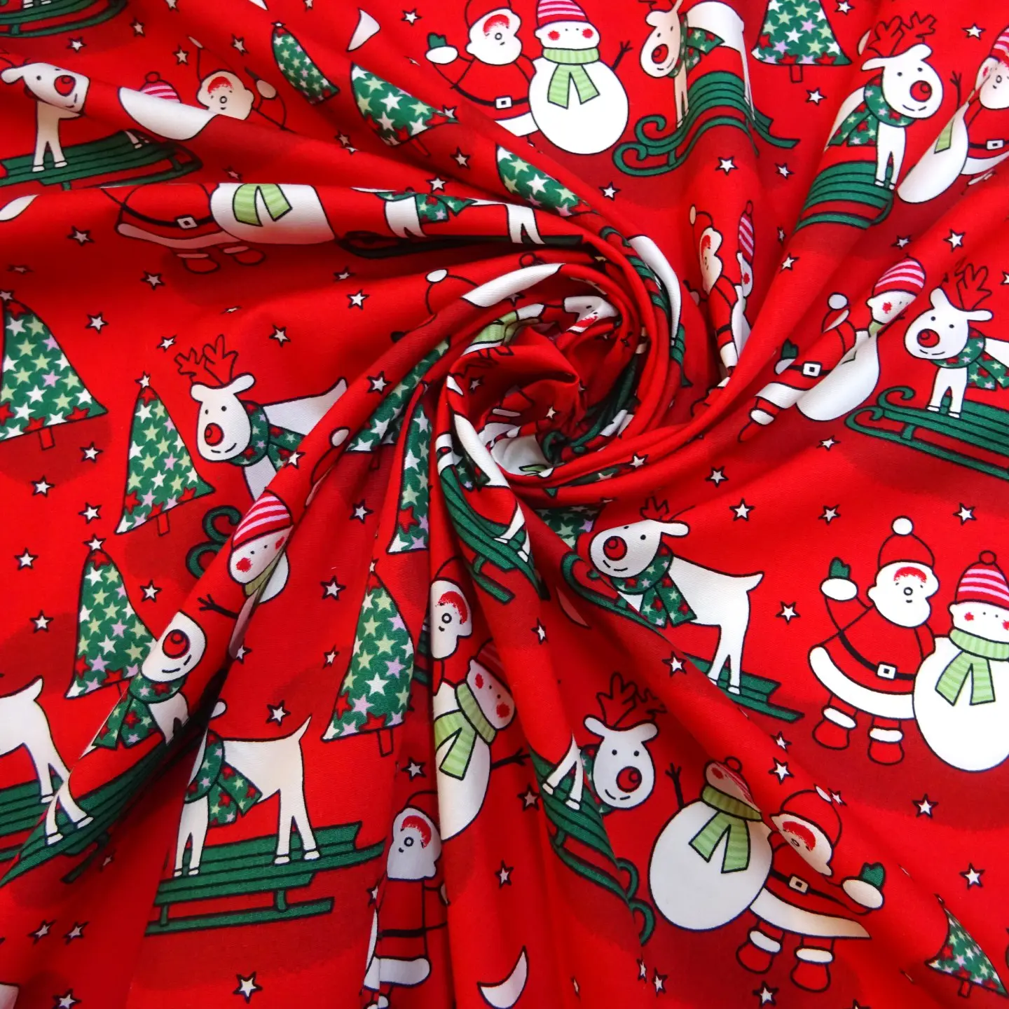 Christmas Fabric 100% Cotton Skiing Reindeer