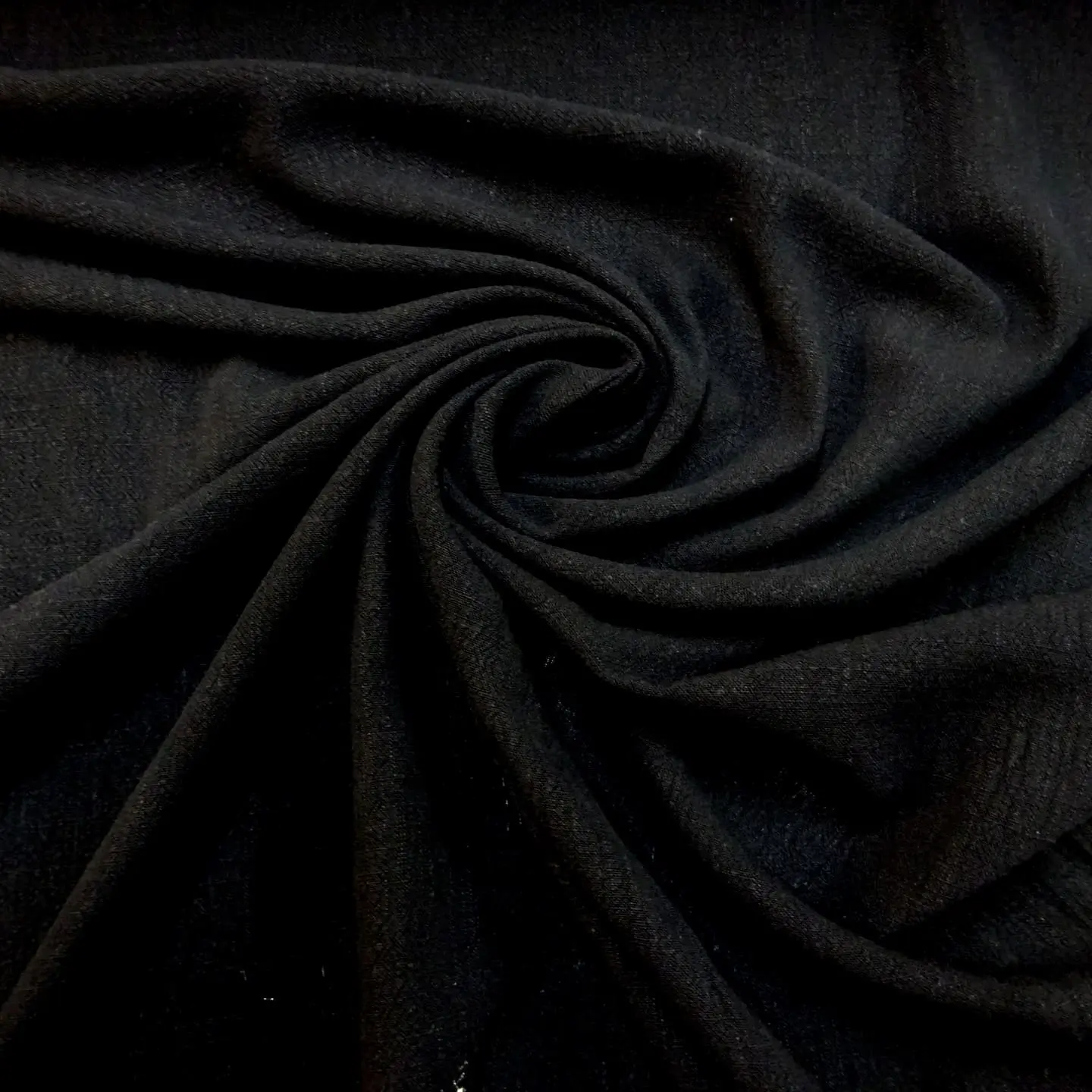 Cotton Feel Fabric Tree Bark Crepe Black is lightweight and ideal for trousers, skirts, and dresses.
