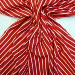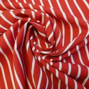 3 reviews for Crepe De Chine Fabric With Spandex Rooster Red White Stripe