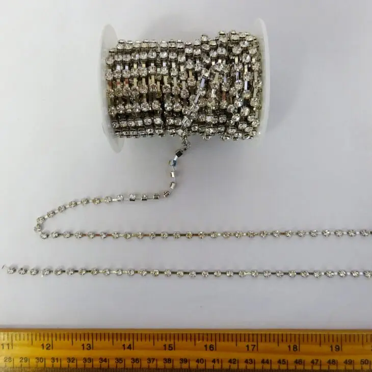 Diamante Trimming Code B2200 Silver can be used for dressmaking, fancy dress costumes and craft/embellishment.