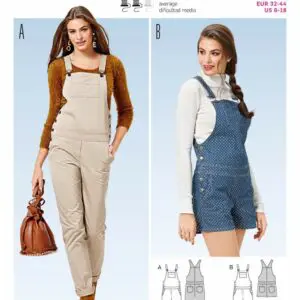 Choose your colour and create casual women’s dungarees with this sewing bundle.