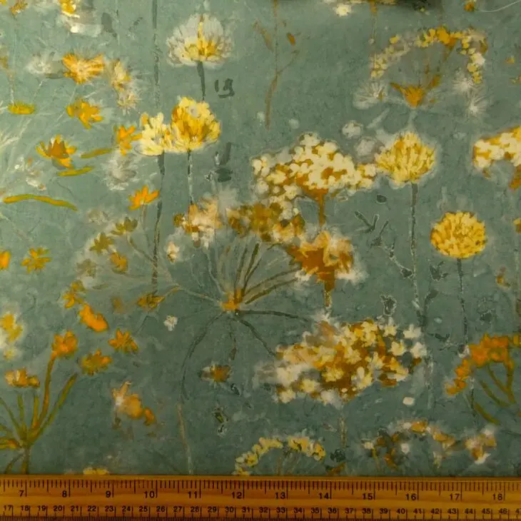 3 reviews for French Cotton Lawn Fabric Soft Finish Dandelion Duck Egg Gold