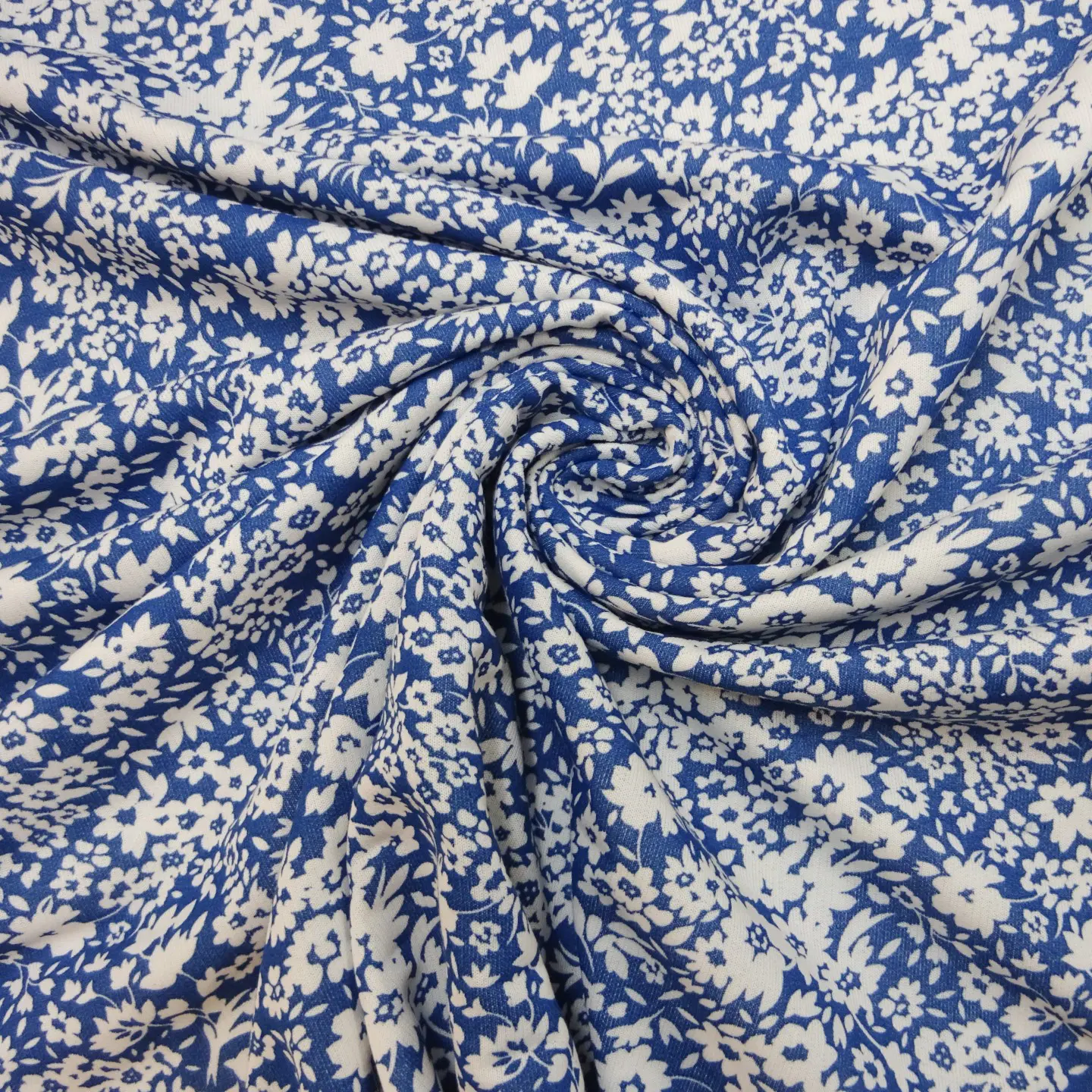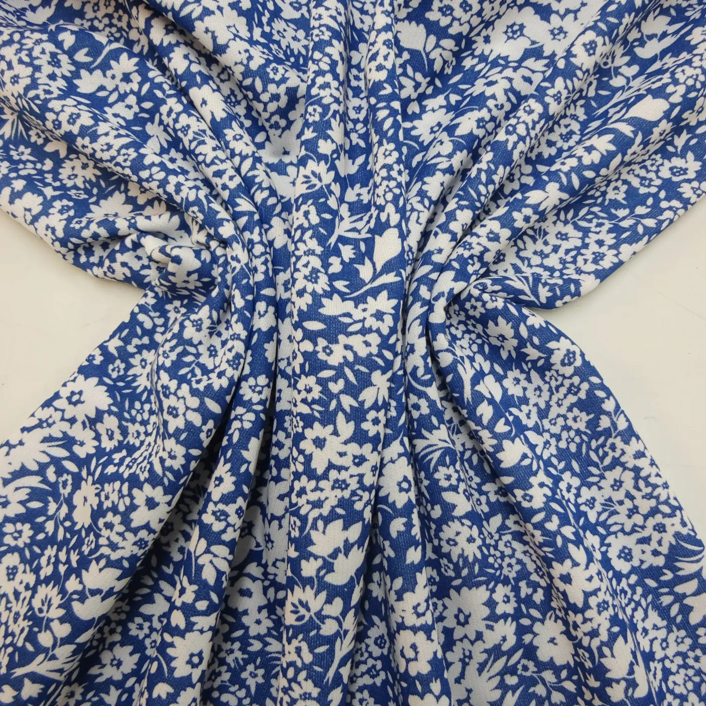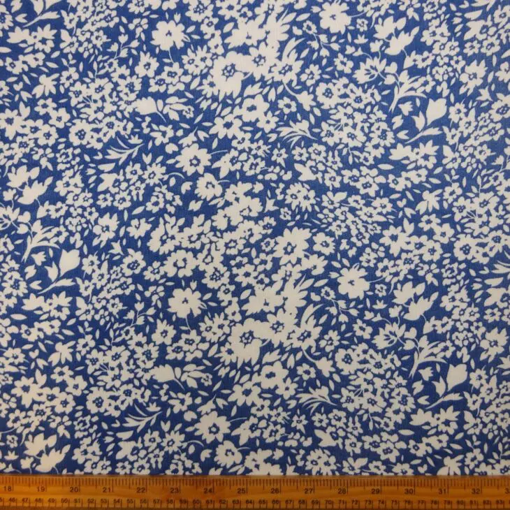 Jersey Fabric Printed Loop Backed Floral Elizabeth Blue