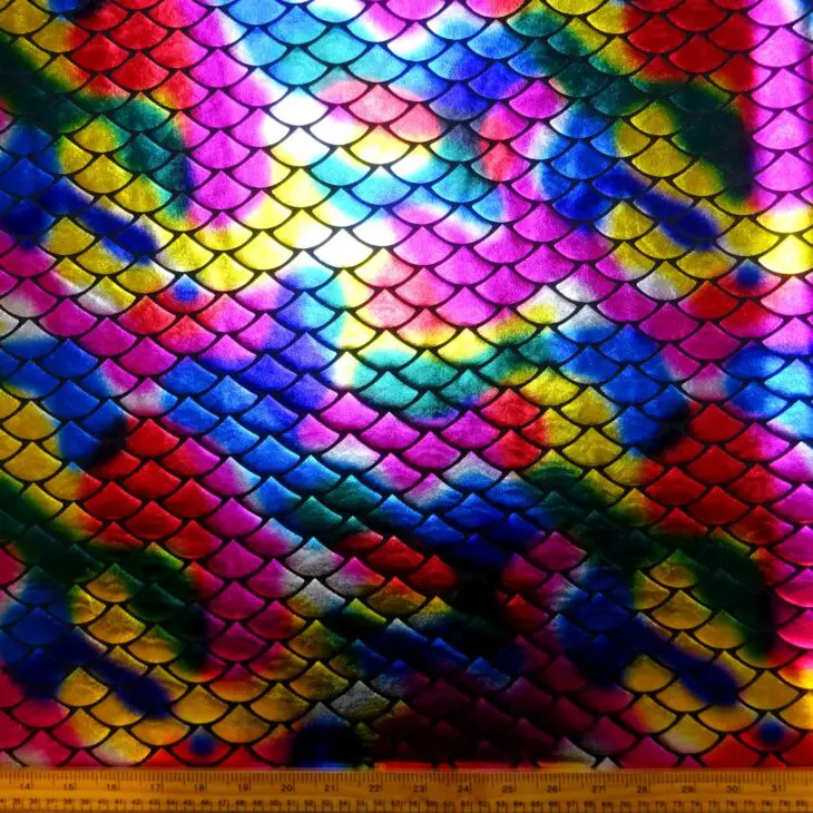 Lycra Fabric Foiling Large Rainbow Cyber Scales Multi