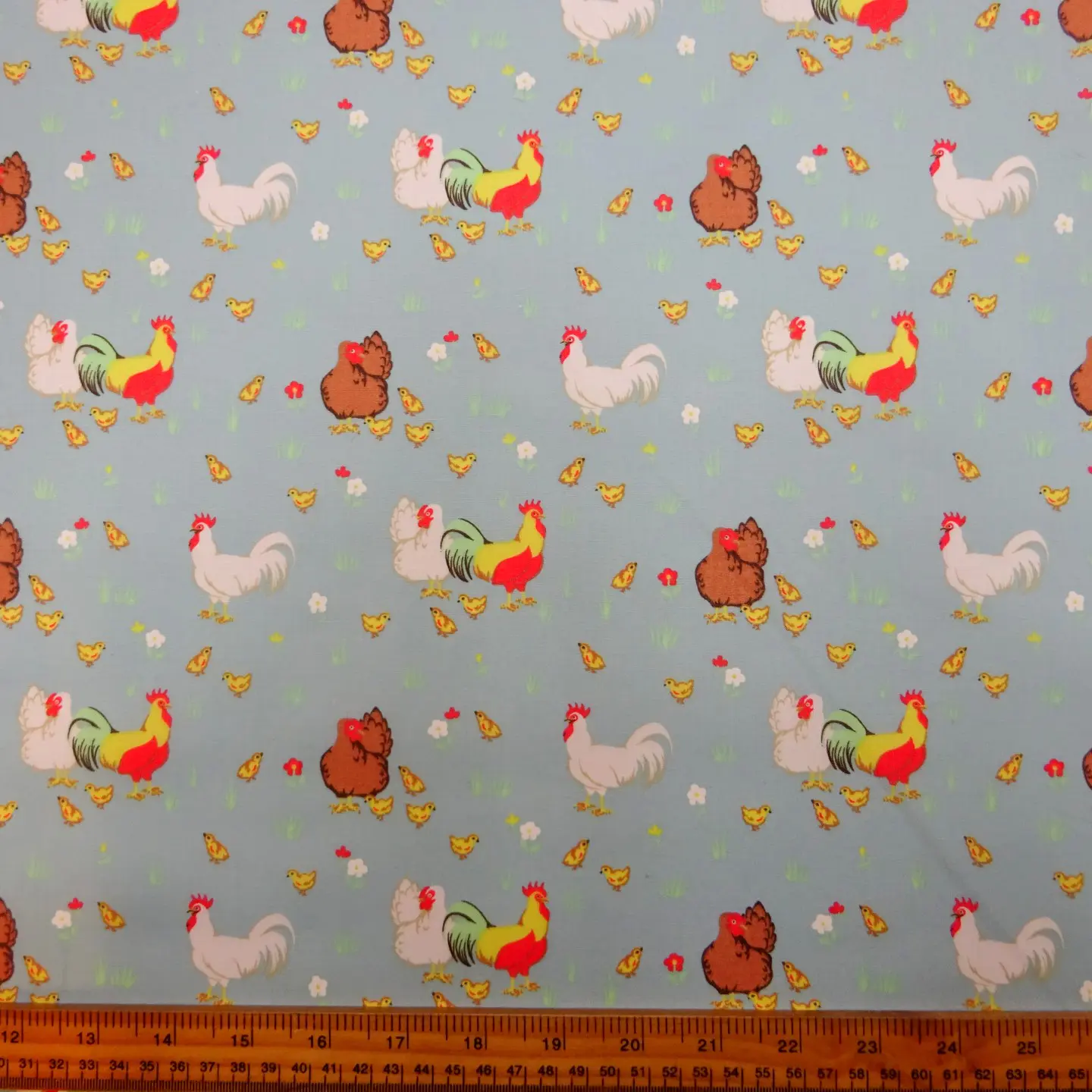 Polyester Cotton Fabric Home To Roost Blue is ideal for shirts, skirts, dresses, and craft projects.Â