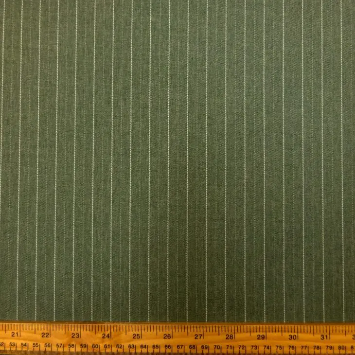 Suiting Fabric Pin Stripe Sage is suitable for trousers, jackets, skirts and dresses.