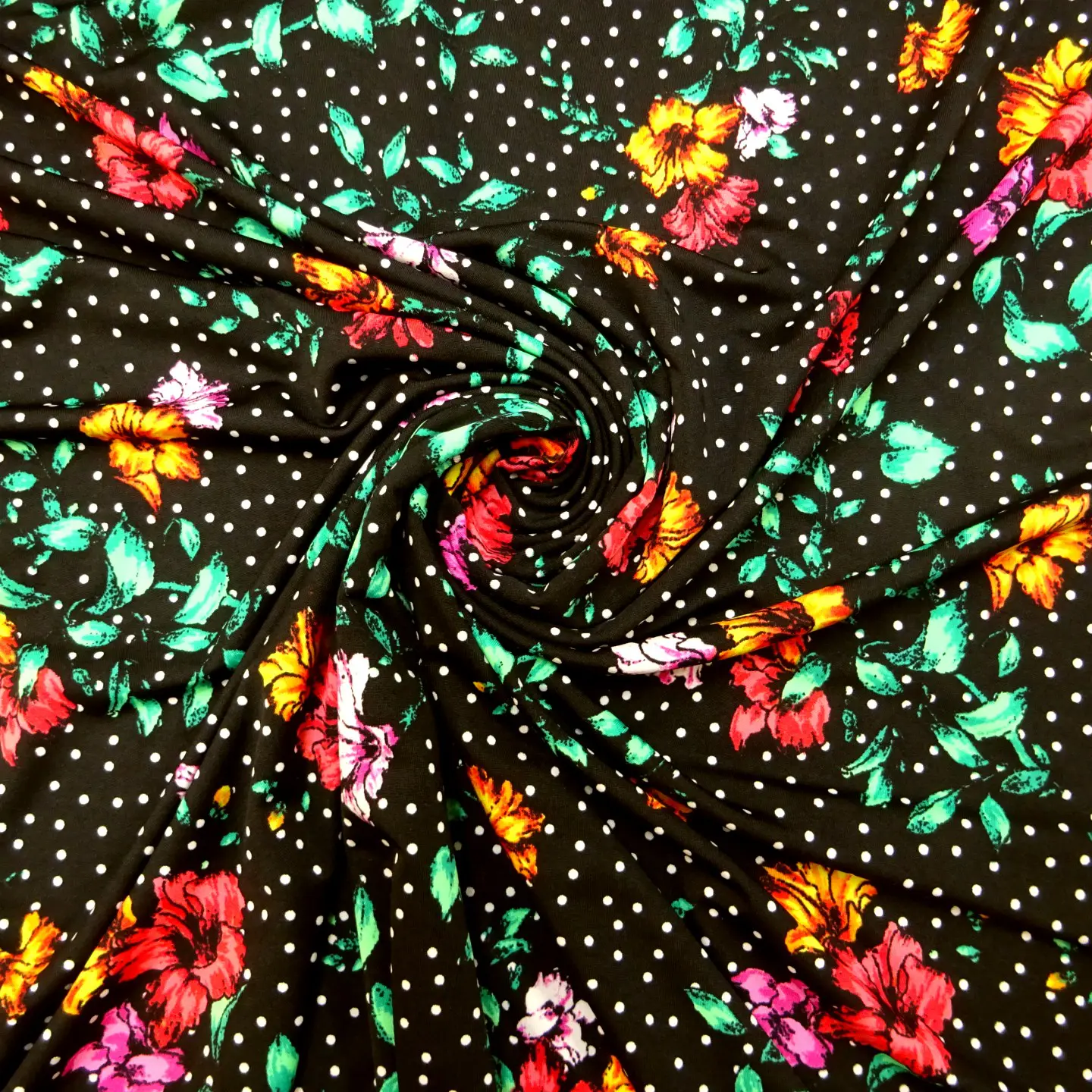 T-Shirting Fabric Floral Snow Storm Sally Black Orange Pink