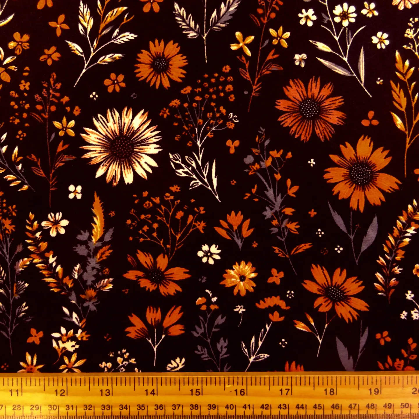 T-Shirting Fabric Ginger Floral Wind Black Orange