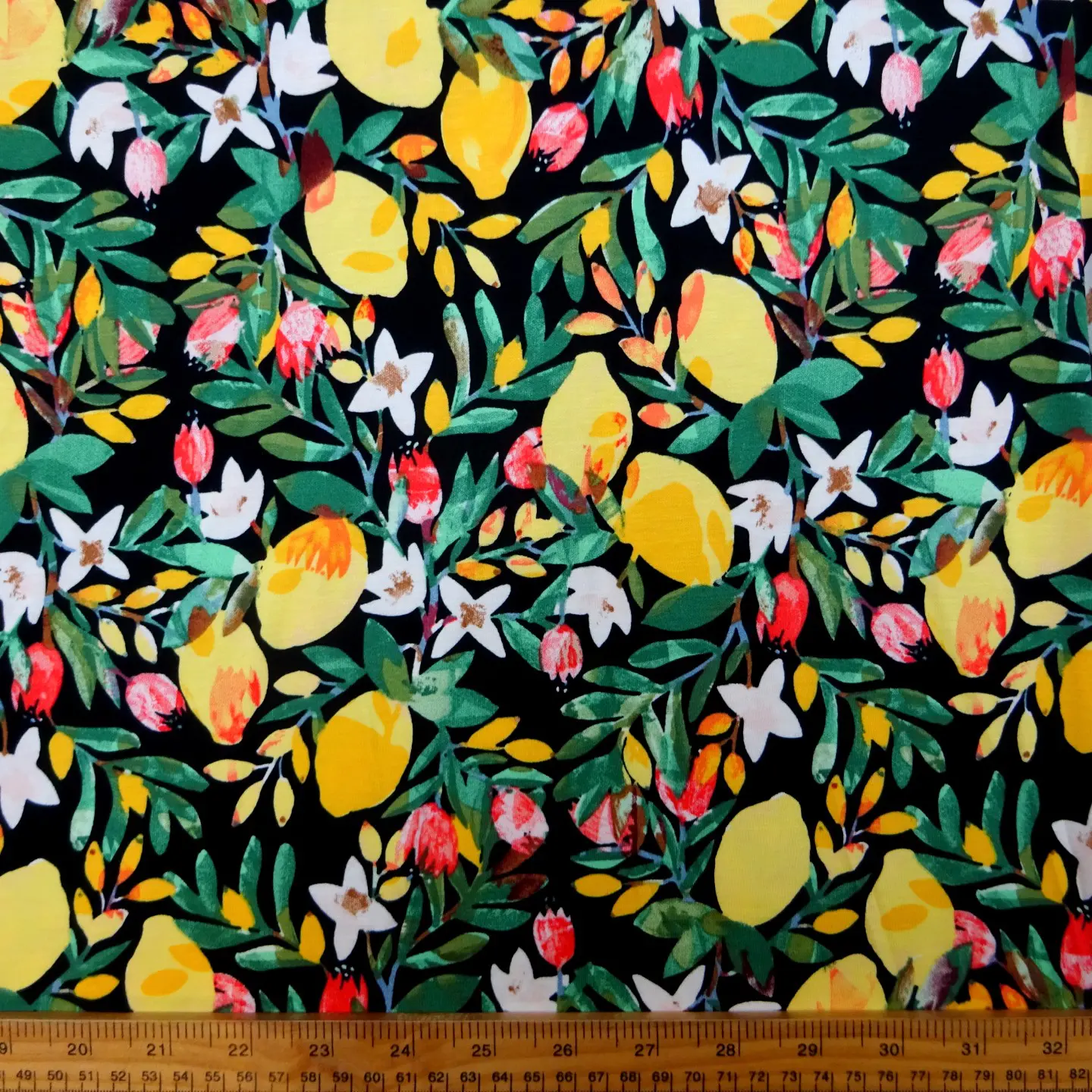 T-Shirting Fabric Lemon Crush Yellow Emerald Black