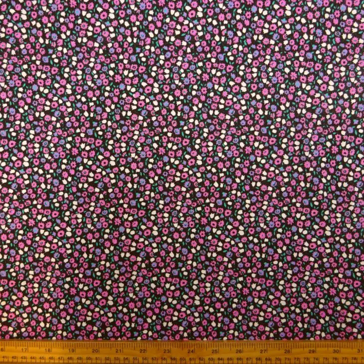 T-Shirting Fabric Louisiana Floral Black Pink Jade