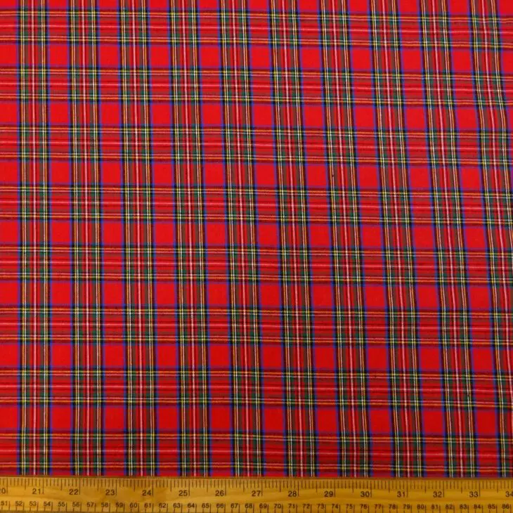 Tartan Fabric Cotton Stewart Bonnie Red