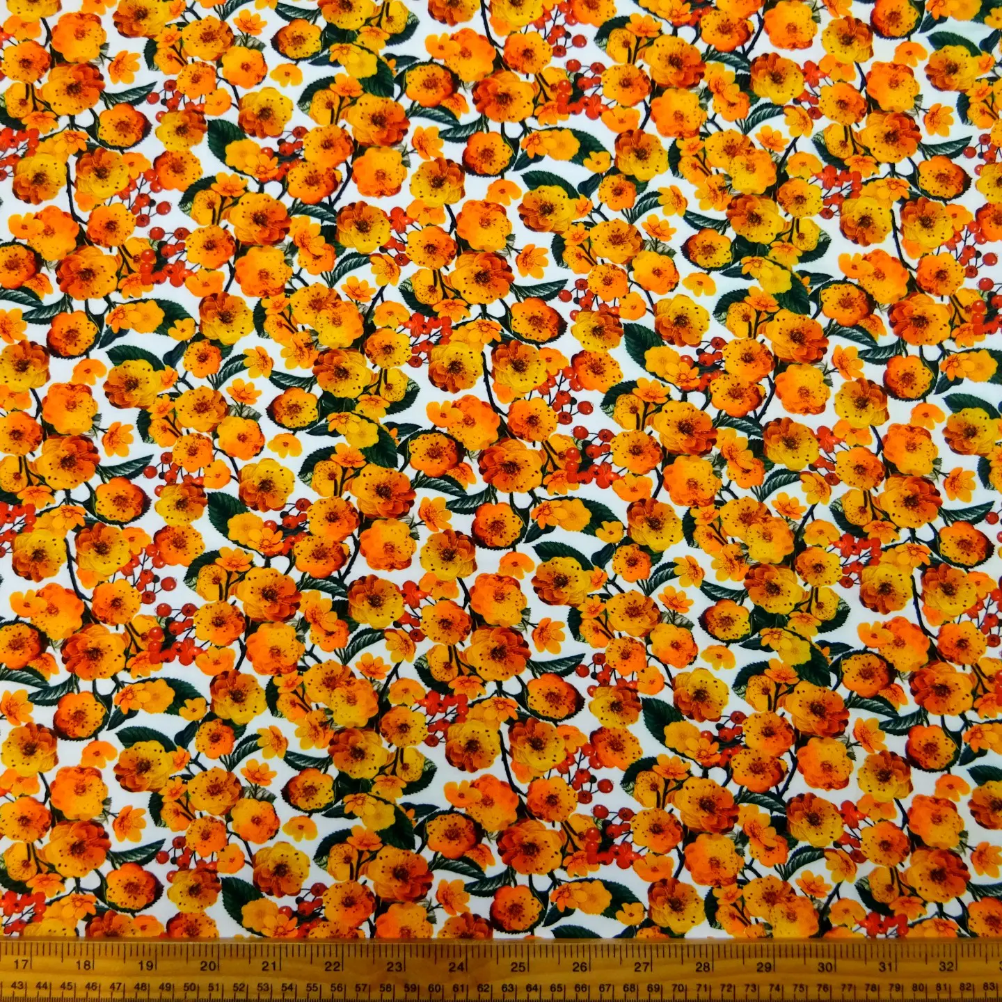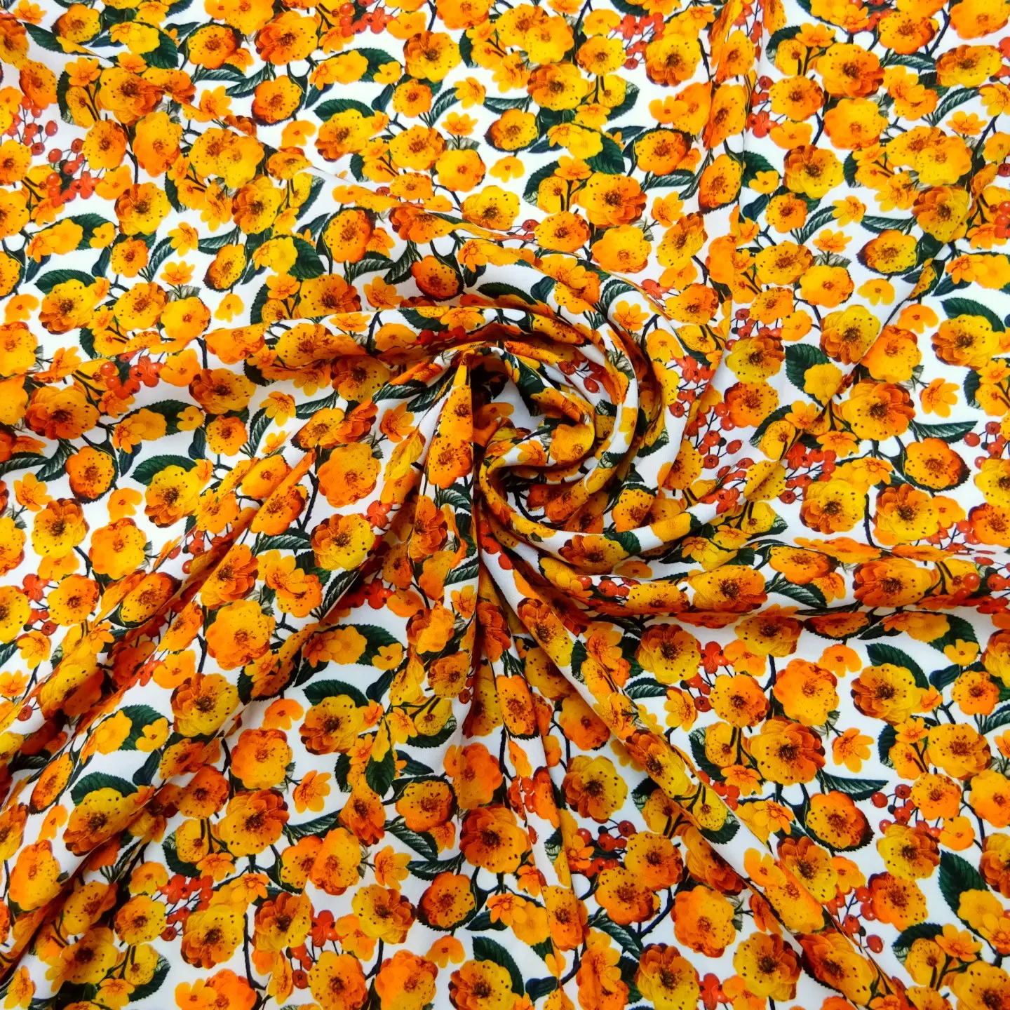 Viscose Fabric Floral Marigolds Meadow Golden Yellow White