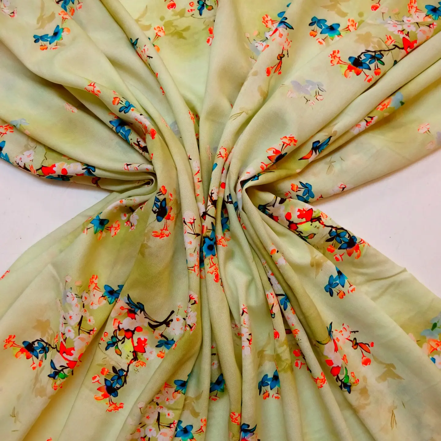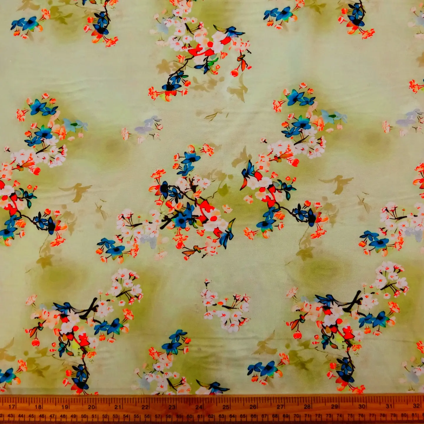 Viscose Fabric Mimosa Flower Sage Turquoise